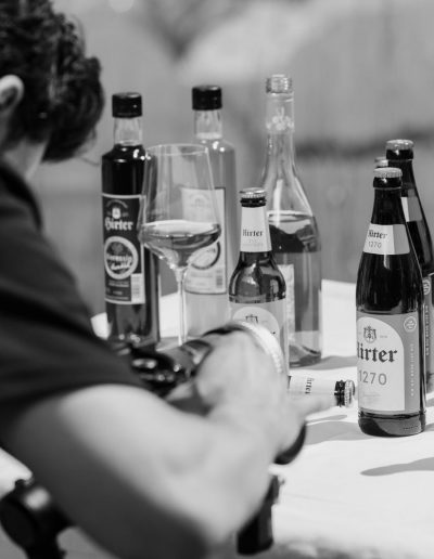 Für das Shooting wurden über 150 Flaschen einzeln gewissenhaft beklebt, gereinigt und final vorbereitet, um in jeder Einstellung perfekt zu wirken. Diese Detailarbeit ist essenziell, um ein stimmiges Gesamtbild zu schaffen und der Marke auch im Close-up gerecht zu werden.